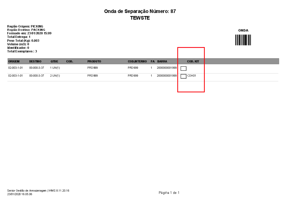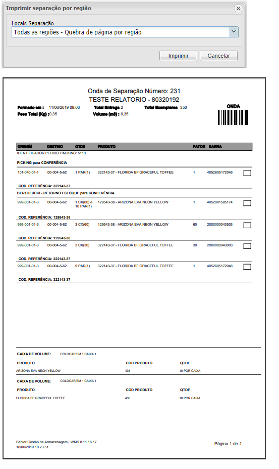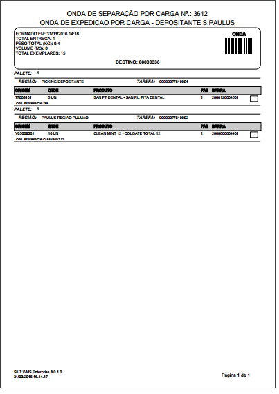Ajustamos la formación de onda, comenzando con las versiones 8.11.16.13 y 8.11.21.0, con elcaja de montaje de volumen vinculado al Depositante cuya posición de pedidono completar el factor de conversión, es decir, se clasifica como excedente. Si hay un enlace, el sistema calcula el volumen de paquetes (sobrantes) con el volumen de la caja, y sino encaja, muestra un mensaje de advertencia sin espacio, pero si no hay un enlace, el sistema localiza la caja capaz de contener todos los productos del pedido. Y para que este flujo se lleve a cabo es necesario que en la Configuración Wave el campo:Calcular la cantidad de paquetes ser configurado con la opciónPor Barra Maior Factor y Own Cash. Consideración: Se modificó la impresión del Mapa de Separación de acuerdo a la información Totales de Cajas y cantidad de productos por caja. Ver más detalles.