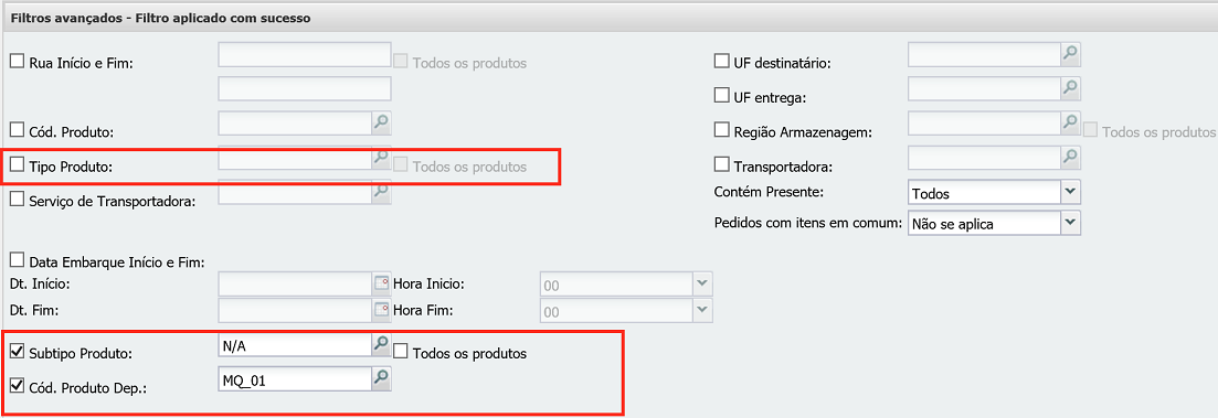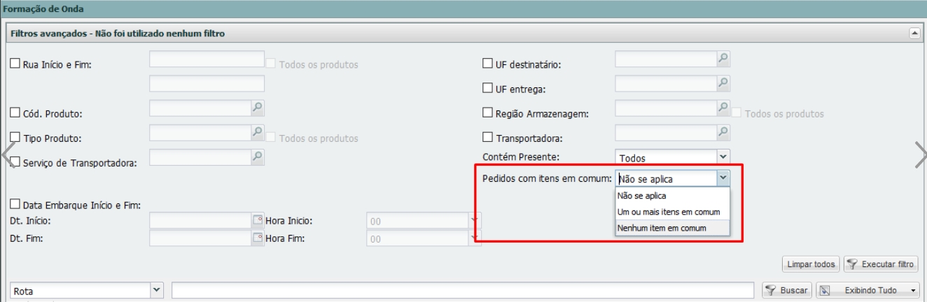 - El sistema fue cambiado para permitir la Búsqueda Avanzada de notas que tienen o no tienen marcado el campo "Regalo Contém", desde el menú Movimiento / Salida / Gestor de Despacho / "Anterior" (Formación de Onda), luego de seleccionar la "Configuración de la Ola". Se insertó un criterio de filtro denominado “Contém Gift”, buscando solo notas / pedidos con obsequios. Para que lo recuerde, debe haber una Orden de separación para la nota / solicitud, con el campo "regalo
