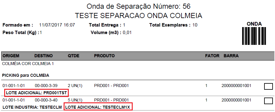 Desde la versión 8.9.2.0, si el parámetroMostrar lote adicional en mapas de separación, se activa en la configuración de onda /Separación , influye en la impresión delLote adicional si existe en el Mapa de Separación, tanto para los informes por región como por Todas las Regiones.