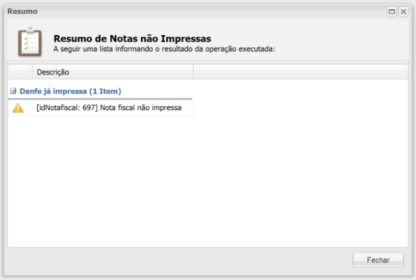 Observación: si hay notasno impreso, muestra un resumen de ejecución al final del proceso, indicando el motivo de la no imprimiendo cada nota agrupada por motivo.