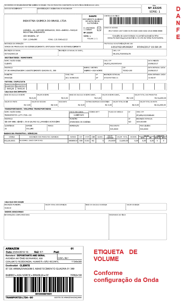 En Configuración de almacén / Wave / el parámetro "Mostrar factura en la etiqueta de volumen" define qué etiqueta se imprime, es decir, si este parámetro esmarcado imprime la etiqueta con dimensiones de alto 70 mm x ancho 100 mm, imprimiendo el número de factura en la etiqueta, pero esta etiqueta solo se muestra si hay alguna separación de onda que saledirectamente del pulmón.