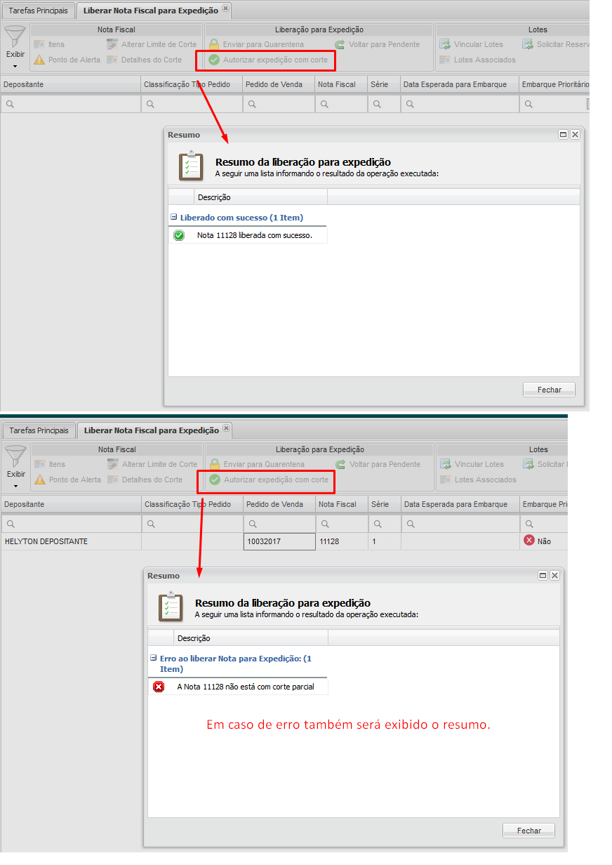 - Al importar el NF-e u OF, y el depositante solo usa (o no) elliberación automática, sigue el flujo existente en el sistema.