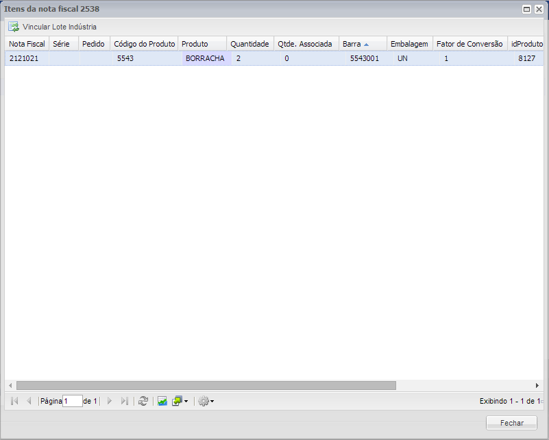 O si parámetroInclusión de Inventario en la Separación Específica en el submenú Registro de depositante> Envío está configuradoPor lote industrial, abre una pantalla que enumera los productos presentes en la factura para asociarlos con los lotes. La visualización de esta pantalla tiene como objetivo facilitar la visualización de los lotes asociados a cada artículo y también facilitar la visualización de qué lotes están disponibles para asociación. En este caso, se permite seleccionar más de un registro siempre que las facturas pertenezcan al mismo depositante, de lo contrario el botónLotes de enlaces está desactivado.
