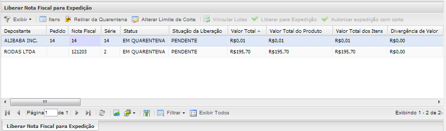 A partir de la versión 8.2.0.0, al importar un NF-e u OF, el sistema verifica si el depositante usaliberación automática y Liberación para envío a granel
