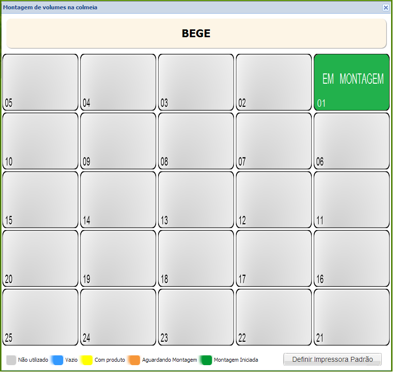 Después de seleccionar una colmena, se muestran los contenedores, pero solo puede montar el volumen de contenedores que tienen el color “Naranja”, cuya descripción es “Esperando ensamblar” (ver parte inferior de la pantalla).