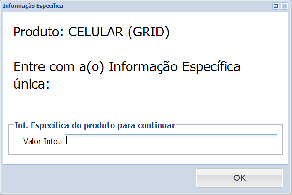 El sistema solicita la recopilación de información específica si el producto informado está configurado para recopilar información específica durante todo el proceso.
