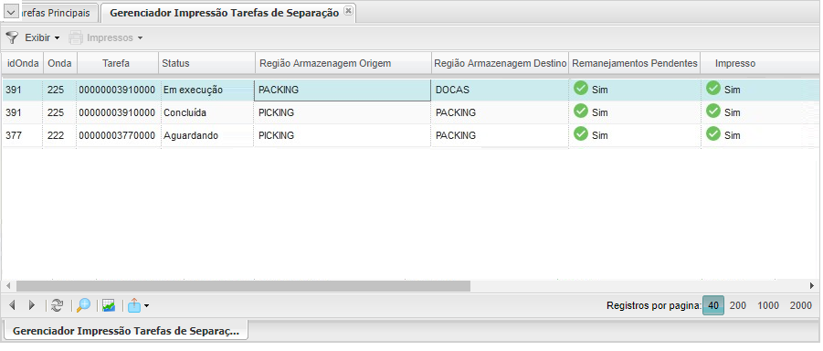 Después de imprimir las tareas de separación oestado de la columnaImpreso se cambia así, registrando el usuario que realizó la impresión en el campo Usuario de impresión y la Fecha y hora del trabajo de impresión en el campo Fecha de impresión, el usuario de impresión a registrar es el usuario en el que está conectado el sistema.