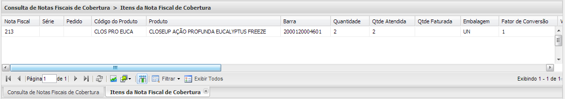 Menú: Factura / Almacén general / Cobertura Consulta de factura