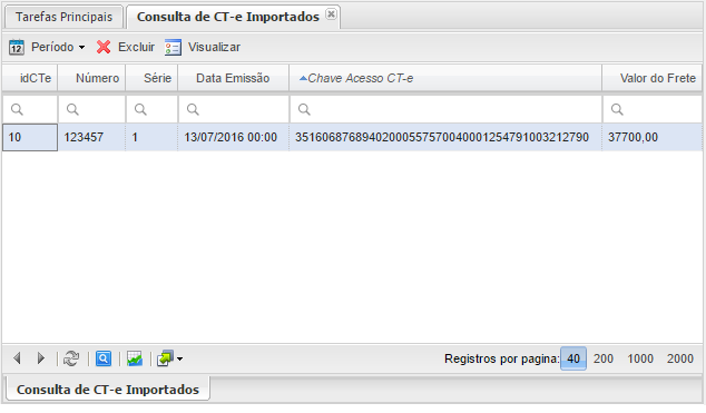 Funcionalidad disponible a partir de la versión 8.3.0.0. Se creó una pantalla que permite la consulta de CT-e importados, con posibilidad depara ver yEliminar