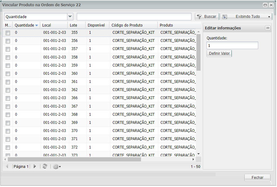 Abre la ventana para insertar productos en el kit de desmontaje.