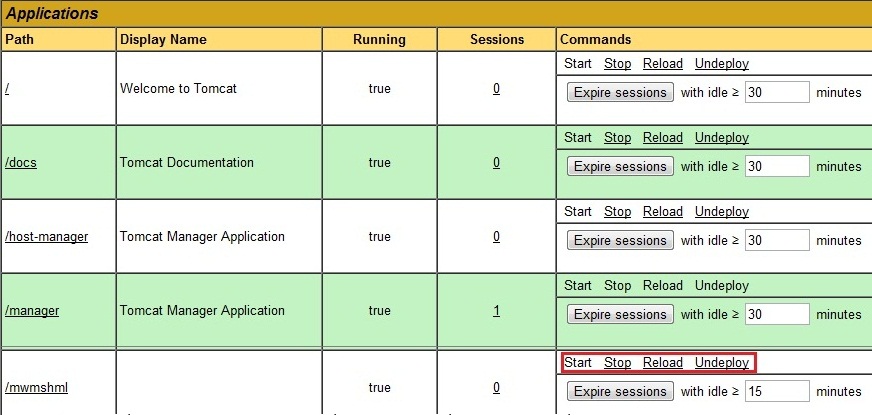 - Ejecute Tomcat, haga clic en el botón:Aplicación de administrador