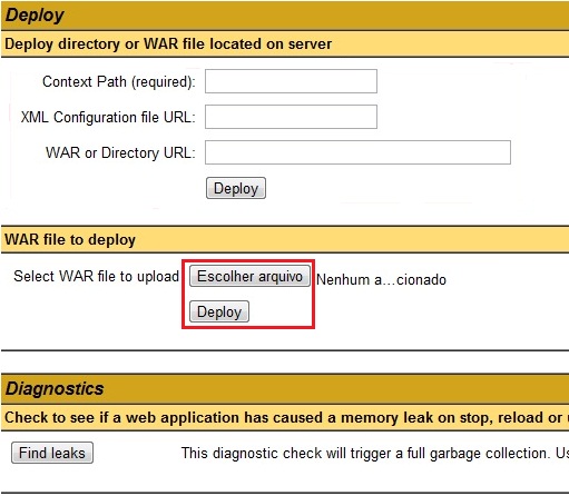 - EnGUERRA archivo para cargar, elija el archivo que está "instalado" y haga clic en Implementar.