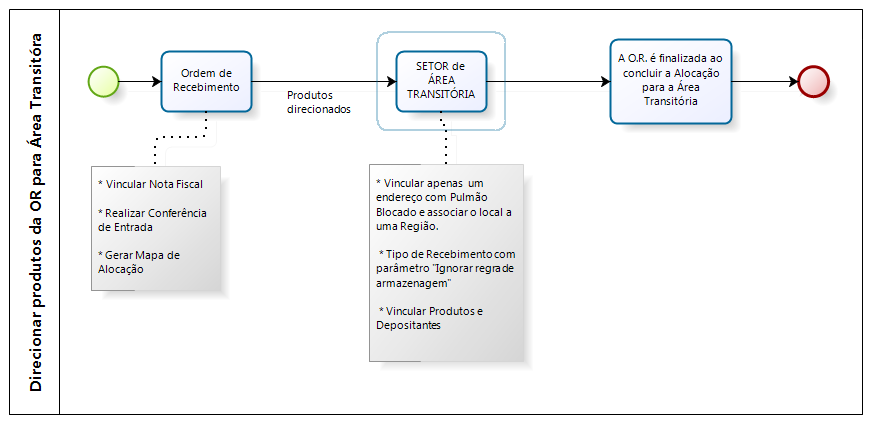Área de transición : Físicamente, esta zona es un espacio libre, sin estructura palet-portador, dentro del almacén, donde se asignan los productos. Para elWMS esta área está configurada por un sector que tiene solo unaúnica ubicación vinculado. El lugar al que llamamos zona de tránsito tiene un conjunto de productos de diferentes pedidos de recepción.