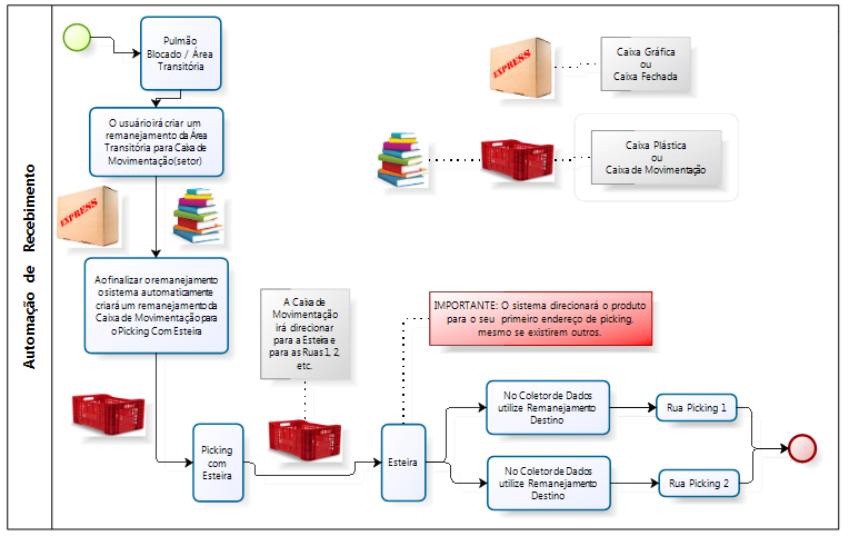 - Cuando el sector de picking de producto no tiene integración con la cinta transportadora,no se puede reubicar en una caja de manipulación, con el operador teniendo que reubicarse en el búfer o en un picking no cinta transportadora sin informar a la caja en movimiento, es decir, ejecutar el proceso actual.
