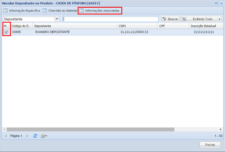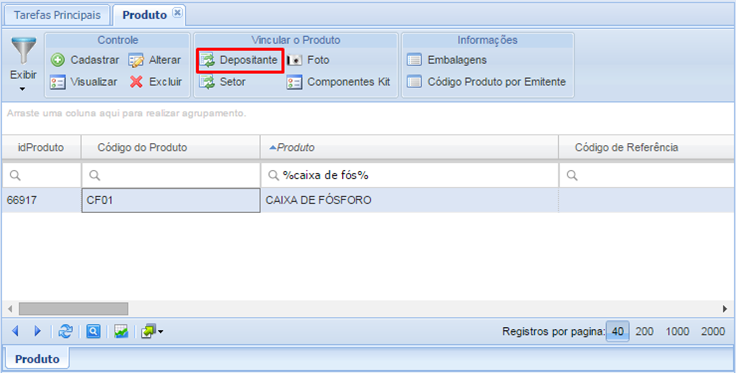 Después de registrar el producto, es hora de vincular el producto a uno o más Depositantes, así que seleccione un registro y haga clic en el botón Depositor.
