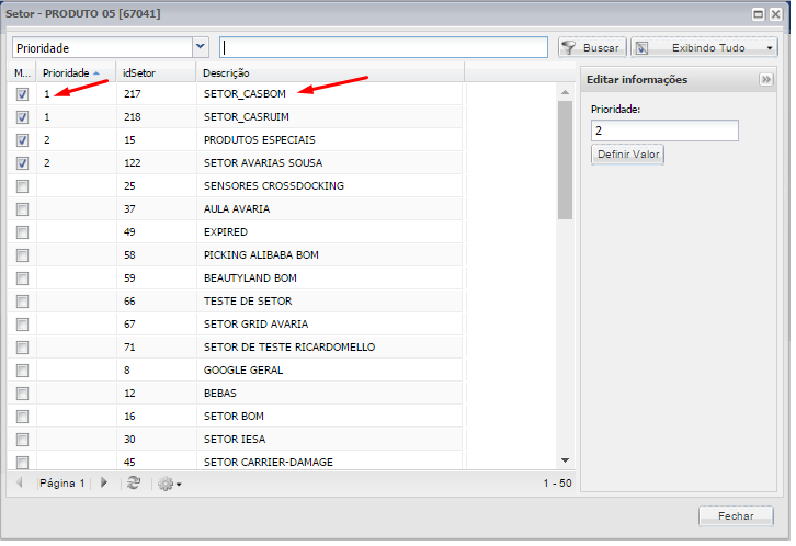 En este punto, es necesario asociar el producto a un sector que a su vez está asociado a una Región y un Tipo de Recibo.