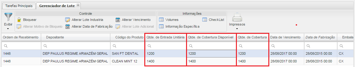 - Columna'Cantidad de entrada de unidad': muestra la cantidad de entrada de la unidad de lote;