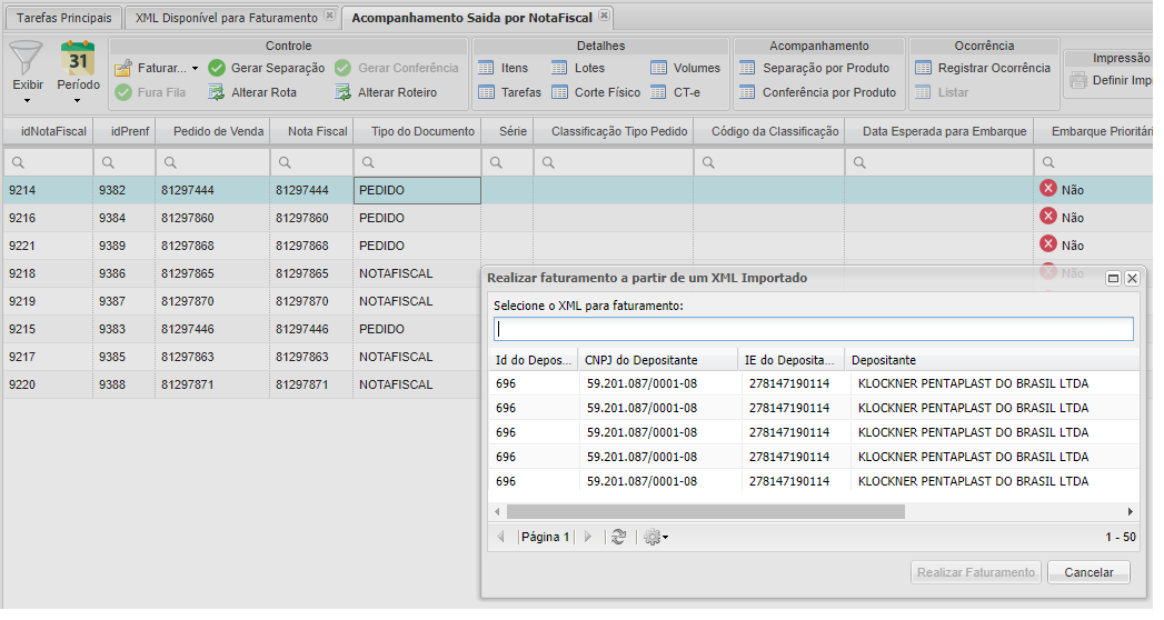 Se importa el XML de la factura de ventas, que se utiliza para la facturación de pedidos. En esta situación, una rutina intenta automáticamente vincular la Factura al Pedido para su facturación, comparando exactamente los productos y las cantidades enviadas. CasoNo lograr una facturación exitosa de forma automática (por ejemplo: porque hay dos pedidos exactamente iguales), podemos seleccionar el pedido en la pantalla Monitoreo > Monitoreo de Salida por Factura > botón:Factura > opciónXML importado para Facturación manual, seleccione solo uno de los XML importados y disponibles para poder facturar los pedidos.