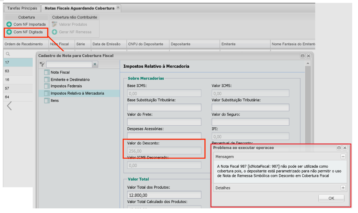 Creamos este proceso desde la versión 8.11.16.0. El sistema evita la vinculación de una factura a un quirófano, en el caso de envío para almacenamiento con descuento. Bien comono Es posible realizar Cobertura Tributaria utilizando Factura Importada, cuando la factura de Envío Simbólico tiene un Descuento.