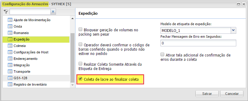 En Configuración de almacén> Submenú: Despacho, active el parámetro "Recogida de sellos al final de recogida".