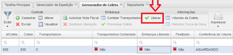 Haga clic en el botónLIBERACIÓN, para recopilar los volúmenes a través del recopilador de datos.