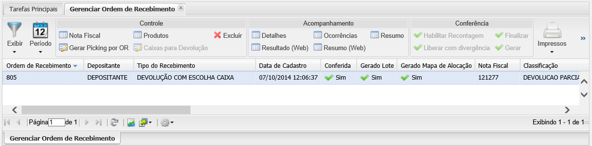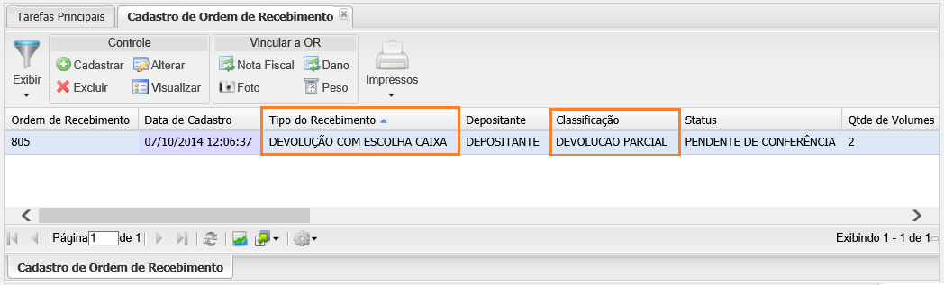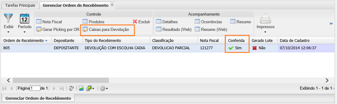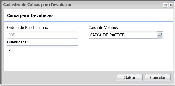 Desde el botón “Tipo de caja de devolución”, es posible registrar libremente una o más cajas para usar en el Pedido de Recibo (OR), incluso si el número de cajas excede el número de productos recibidos. Es posible Cambiar y Eliminar casillas, siempre que la Orden de Recibo esté pendiente de Generar Lote y Mapa, y el Tipo de Recibo de Devolución tenga activado el parámetro "Elegir Tipo de Casilla para Devolución de Producto".