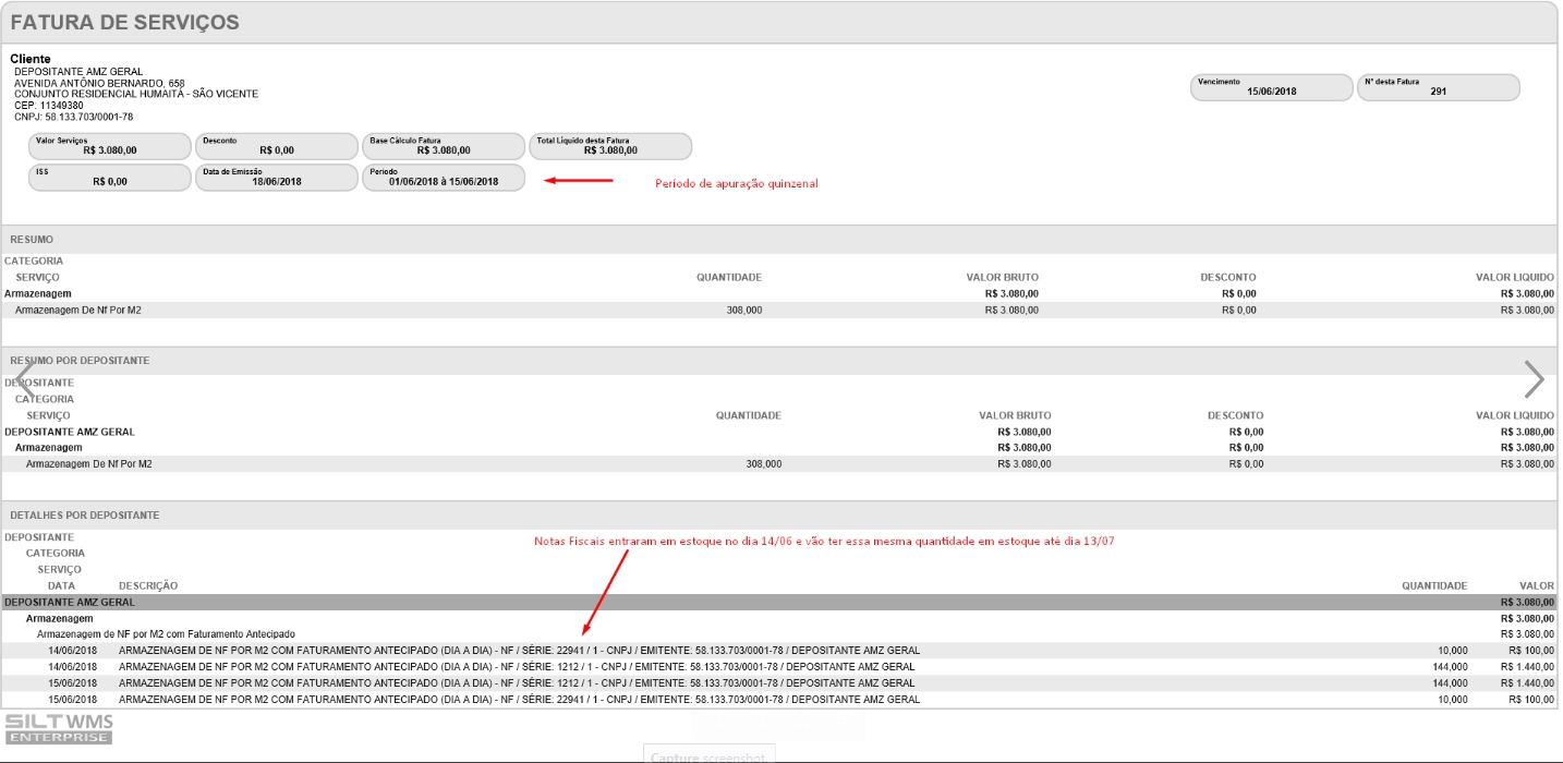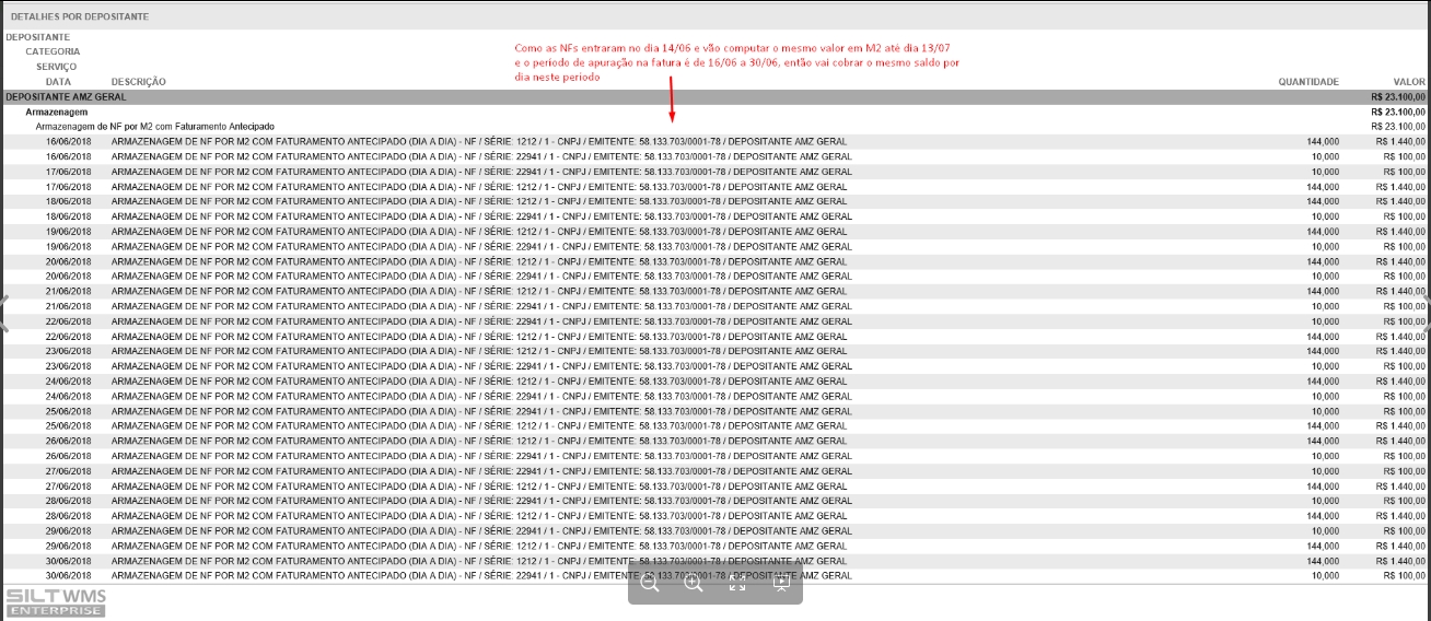 - Ejemplo 2: el cliente recibe la puntuación 123 el 01/08/17, completa 30 días el 30/08/17. Al procesar la facturación el 01/09/17, tener ono saldo referente a esta nota, debemos cobrar (almacenamiento) durante 30 días (del 01/08 al 30/08). En el mes siguiente, el 01/10/17, al tramitar el nuevo ciclo de facturación, identificaremos si la carga referente a la factura 123 fue despachada antes del 30/08, de ser así,no cargaremos de nuevo. sino
