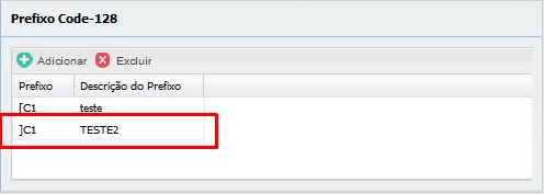 Botón: Regla Code-128> Submenú Prefijo Code-128> Botón:Agregar