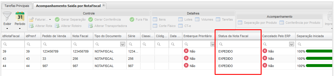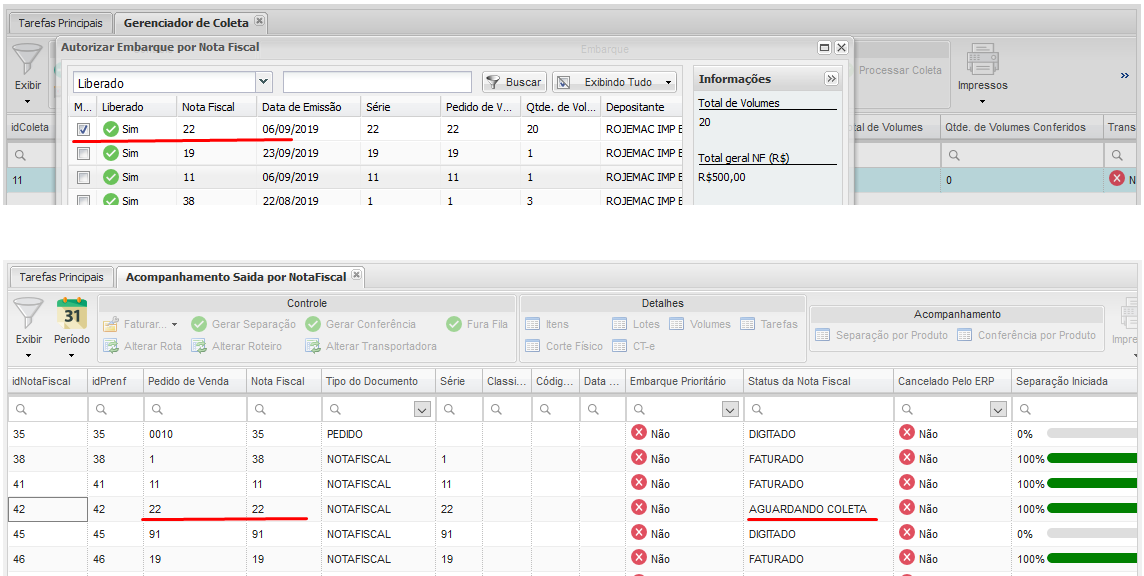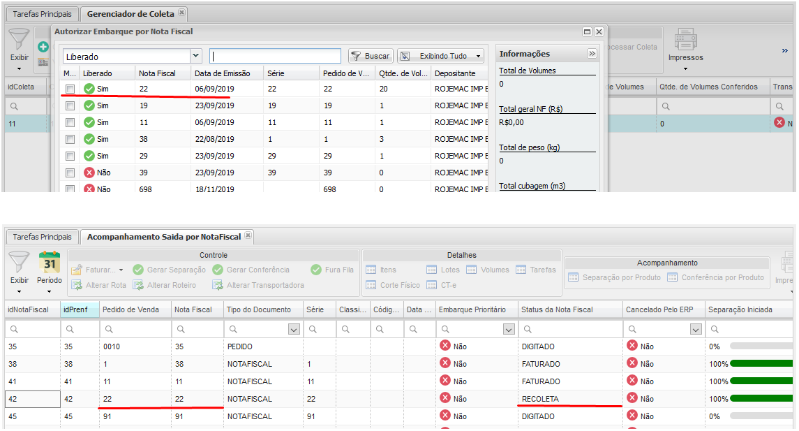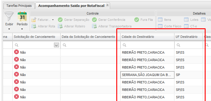 la pantalla deMonitoreo de salida por factura muestra una descripción general del estado de la orden / factura dentro del almacén, sin embargo, esta pantallano informa si el pedido / factura ya se ha vinculado a una colección, y también no muestra la ciudad del destinatario de la nota, y para eso hemos realizado cambios desde la versión 8.11.25.0.