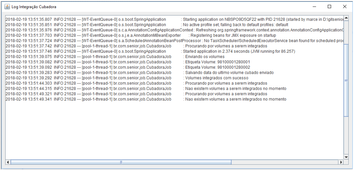 Posteriormente, la aplicación abre una pantalla para mostrar los registros de lo sucedido con los volúmenes integrados en el WMS.