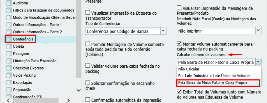 Ajustamos la Formación de la Ola, con la caja de ensamblaje de volumen vinculada al Depositante cuyo artículo de pedidono completar el factor de conversión, es decir, se clasifica como excedente. Si hay un enlace, el sistema calcula el volumen de paquetes (sobrantes) con el volumen de la caja, y sino encaja, muestra un mensaje de advertencia sin espacio, pero si no hay un enlace, el sistema encuentra la caja capaz de contener todos los productos del pedido. Y para que este flujo se lleve a cabo es necesario que en la Configuración Wave el campo:Calcular la cantidad de paquetes ser configurado con la opciónPor Barra Maior Factor y Own Cash.