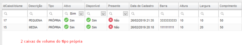 - Si hay sobras en la división anterior, el WMS verifica el registro deCaja de volumen, obteniendo las cajas del tipopropio yActivo, analizando la cantidad de volúmenes necesarios para el resto de productos, considerando su cubage y el cubage de las propias cajas.