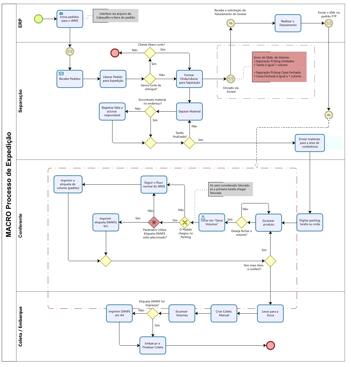 - Si se selecciona el parámetro, luego de imprimir el DANFE simplificado, se imprime la etiqueta de volumen ya parametrizada en la configuración de onda. Esto es necesario porque el depositante puede optar por imprimir una etiqueta de volumen personalizada, con su logo. Si aún no se ha facturado la factura por el volumen, solo se imprimirá la etiqueta de volumen.