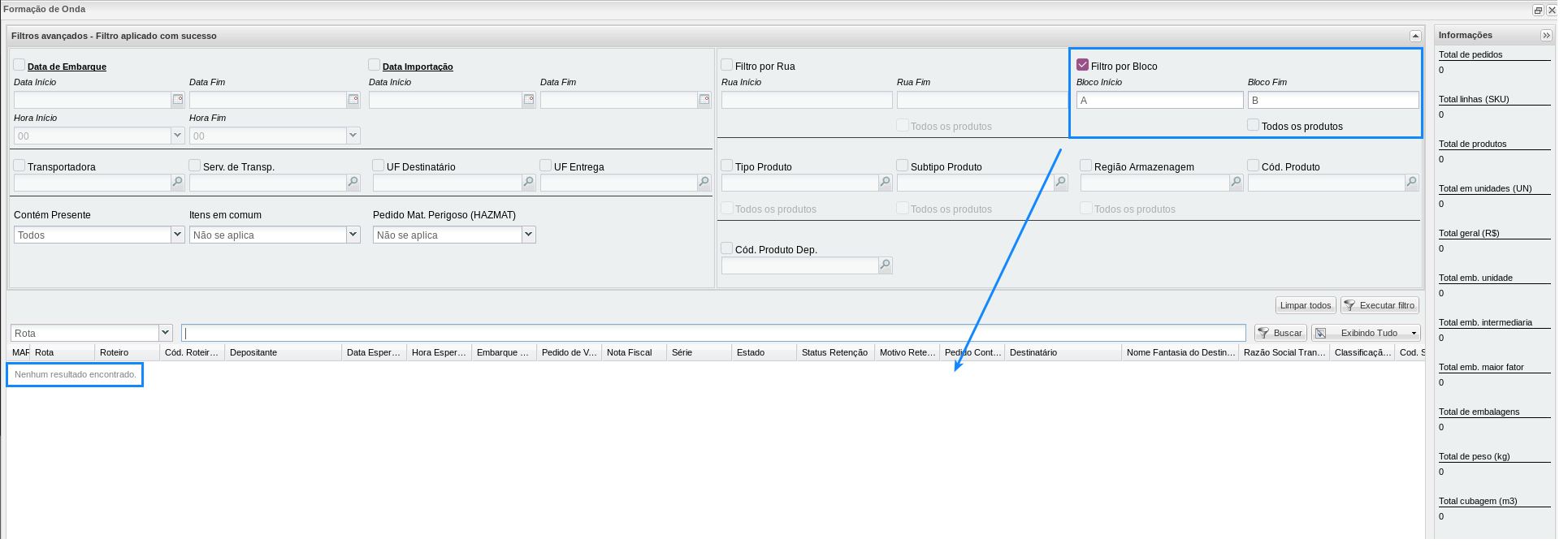 En filtros de formación de onda avanzados, proporcionamos lanuevo filtro llamado:Bloque inicial y final, luego de informar los bloques se realiza la consulta y solo muestra las facturas/pedidos donde todos sus productos están dentro de los bloques insertados en el filtro.