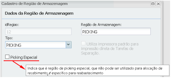 Incluimos el parámetro:Picking especial: que determina que sus direcciones asociadas, de TIPO: PICKINGno puede recibir stock por OR, es decir, la dirección está temporalmente destinada a reabastecimiento. Y cuando es Picking "normal", simplemente cree otra región de Picking sin marcar el parámetroPicking especial.