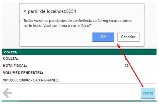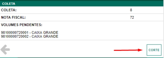 Después de liberar la colección para su envío si hay volúmenesno entregado en el muelle, el usuario puede registrar el corte de los volúmenes, para proceder con el proceso de carga de los demás volúmenes.