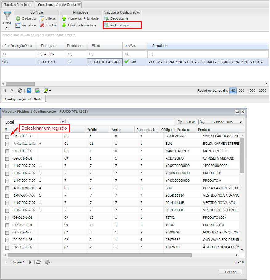 e permite vincular Pick to Light, si el parámetro está activado en la configuración Producto x Depositor Picking dinámico.
