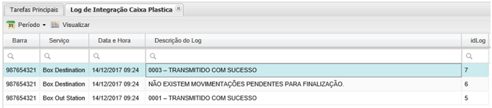 Insertamos el Registro de Integración de Caixa Plástica, desde el menú: Integración> Registro de Integración de Caixa Plástica, que muestra las integraciones de las Cajas Plásticas del flujo PTL / PBL.