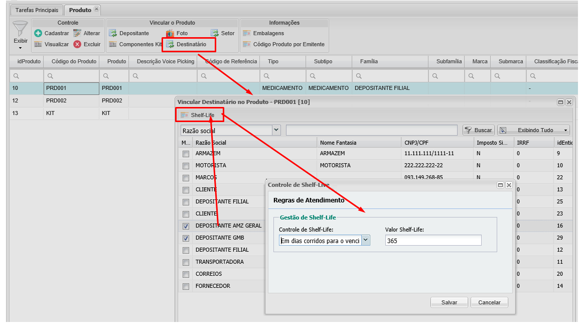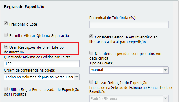 Menú: Registro> Depositante> Submenú: Reglas de envío> parámetro:Usar restricciones de vida útil por destinatario: Durante el envío de productos, verifique la fecha de vencimiento según el plazo establecido por el destinatario.
