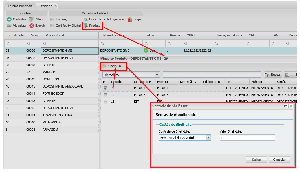 A partir de la versión 8.10.1.0, modificamos la forma de onda para tener en cuenta laFecha de vencimiento, o más bien elVida útil del producto x destinatario , Porque elLa fecha de vencimiento del producto es muy variable para el tamaño de entrega del cliente.. El control se puede realizar en el botón Registro del producto>recipiente, y en la pantalla Entidad> botónProducto , o vea la configuración a continuación.