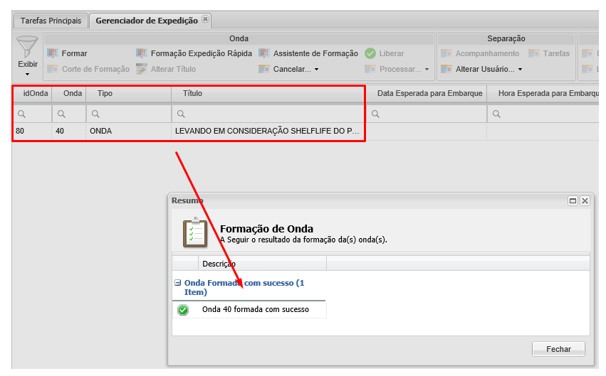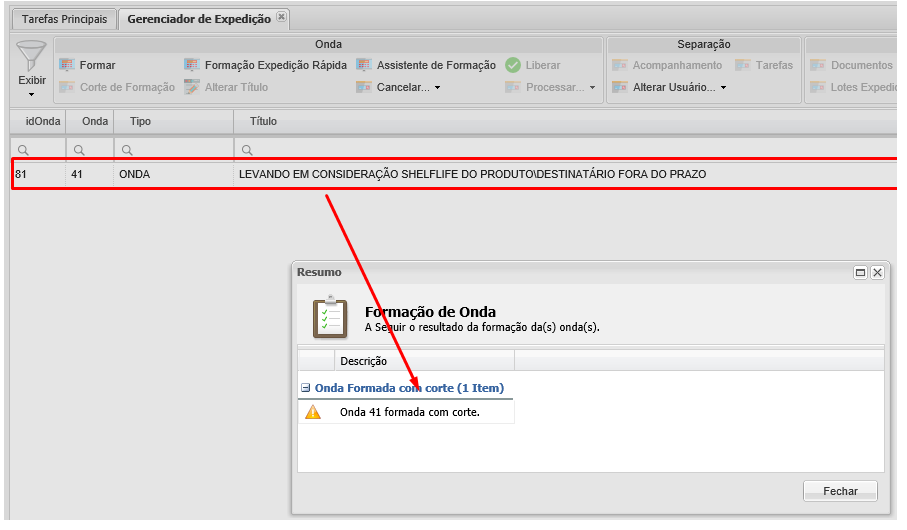 Onda formada con la vida útil configurada por producto / destinatario donde se encuentra el productodentro fecha límite.