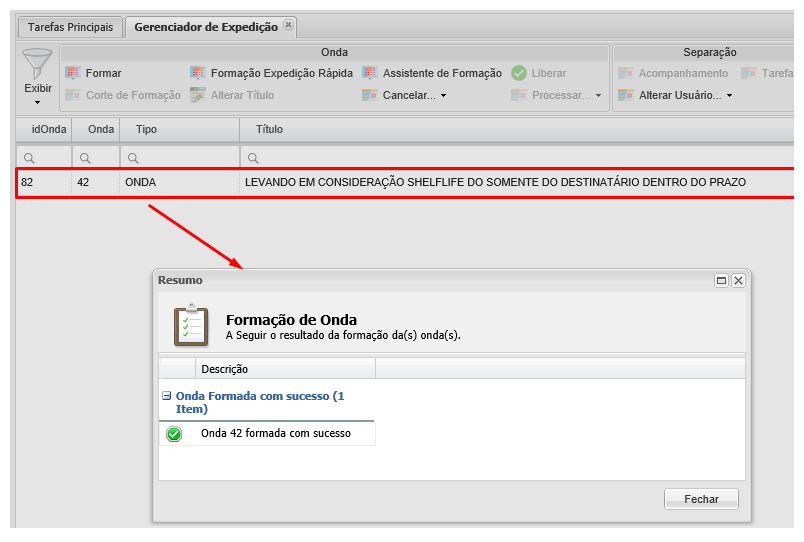Haciendo olas con Shelf-Life configurado solo por destinatario en el que el producto se encuentra dentro del plazo establecido.