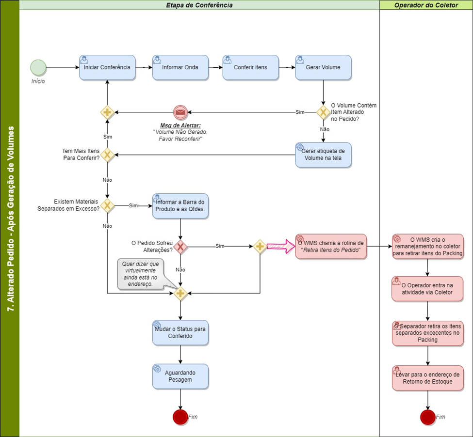 Si el pedido se cambia después del final de la separación o durante el proceso de verificación de embalaje, el sistema creará una reubicación de la ubicación de embalaje al lugar de origen desde donde se separó el artículo. Si se han realizado recuentos, la conferencia actual se cancelará y la conferencia realizará un nuevo recuento.
