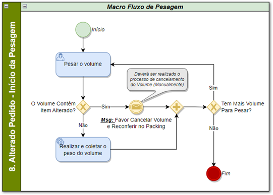 Si en un pedido se modifica la cantidad de artículos después de la generación del volumen. El sistema marcará los volúmenes como modificados (puede comprobarlos en la pantalla de gestión de volúmenes) y el proceso de pesaje se bloqueará si suena la barra de un volumen modificado. Para proceder al cambio será necesario cancelar los volúmenes cambiados y realizar un nuevo control de embalaje.