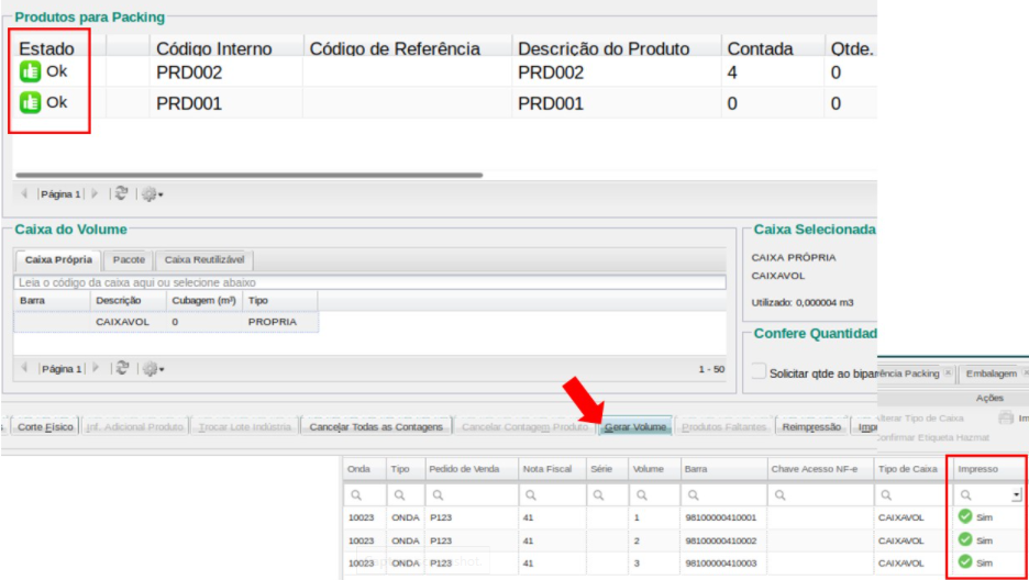- Después de verificar todo el pedido, el estado de todos los productos se muestra comoDE ACUERDO. Al generar el último volumen, todas las etiquetas del pedido se imprimirán a la vez. El Administrador de Volumen también informa que a todos los volúmenes se les han impreso sus etiquetas;