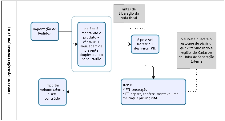 Para los casos en que el depositante tiene unlínea de separación especial, similar al concepto de PTL, esto ocurre enparalelo con PTL y separación común de WMS, solo para algunos tipos de productos, que se determinan al importar los artículos de la factura en esta nueva plantilla XML. En la práctica, se utiliza, por ejemplo, para enviar cápsulas de café, en los casos en que el cliente puede ensamblar cajas de SKU variadas en lugar de enviar exhibidores o cajas completas del mismo SKU. En esta situación, esmarcado en la partida de factura que es este segundo tipo de PTL, llamado por el cliente: POLLUX, donde se separan los productos sin intervención humana en una segunda línea de separación.