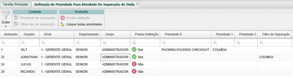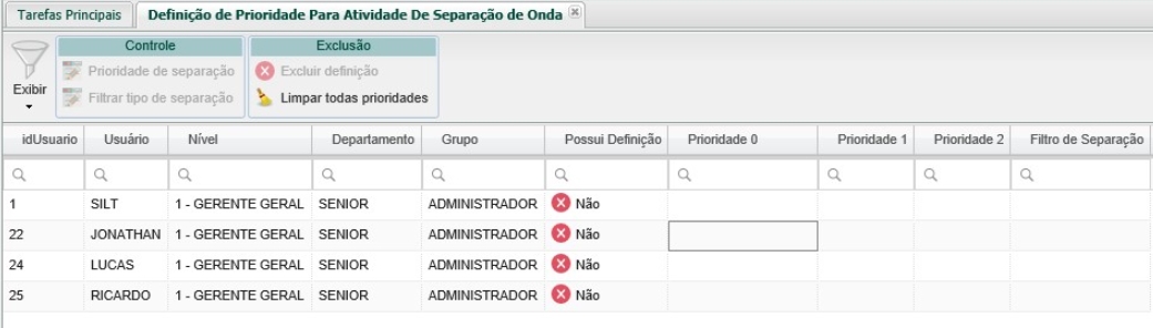 En la lista de invocaciones activas si el usuario está en un grupo que tiene actividad de invocación activa que realizapriorización ofiltrar enActividad de separación de olas, es visible para el usuario en la lista de actividadesapenas una La tarea de Separación de olas, y cuando se elige, selecciona una actividad de separación de olas respetando automáticamente el orden de Tipo de priorización o la filtrar definido por el usuario en la pantallaEstablecimiento de prioridad para la actividad de separación de olas.