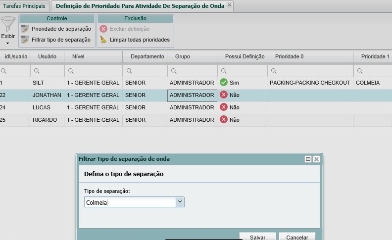 Al encontrar elasignación de Wave Separation, el sistema dirige al usuario directamente a la pantalla donde informa la dirección o Caja de Separación, es decir, iniciando la separación, si alguno de los parámetrosVer una sola actividad que realiza la priorización o Ver filtros de solicitud de actividad única está chequeado.