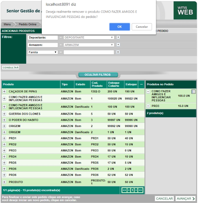 Se mostrarán los lotes de la industria o la información específica agregada al pedido. Si se eliminan, se mostrará una nueva ventana para seleccionar cuáles y cuántos se eliminarán, siempre y cuando esté activado en el Registro de Depositantes el parámetro "Ver lote de industria y fecha de vencimiento al agregar/eliminar orden".
