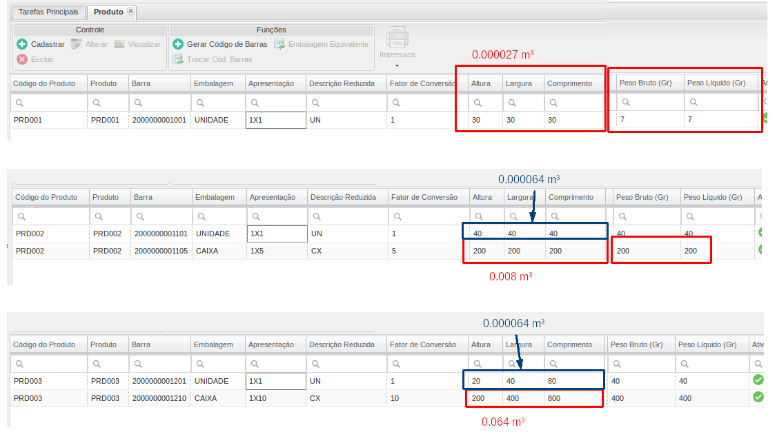 - Volumen Total: 3un * 0.000064m³ = 0.000192m³